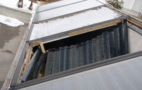 Glasausbruch durch Kriechschnee: Der am Glas haftende Schnee erzeugt durch seine Kriechbewegung starke Kräfte, die das Glas als Ganzes aus dem Rahmen ziehen.