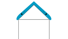 Horizontaler Ruhedruck am Beispiel eines Gebäudes im Binntal (VS). Er entsteht an vertikalen Flächen im flachen Gelände aufgrund der Setzung der Schneedecke. Der Ruhedruck ist dreieckförmig verteilt und errechnet sich in Abhängigkeit der Schneehöhe und der Schneeart (Dichte und Ruhedruckbeiwert). Foto: Stefan Margreth.