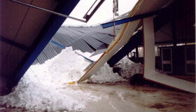 Schneerutsch tritt bei Steildächern mit über 25° Neigung und auf glatten Oberflächen wie Traglufthallen auf, wenn Schnee ohne Behinderung abrutschen kann. Berücksichtigen Sie auch die erhöhten Belastungen, die entstehen, wenn Schnee auf tieferliegende Dachflächen oder An- und Nebenbauten abrutscht. Ebenfalls zu berücksichtigen ist die explosionsartige, einseitige Entlastung (asymmetrischer Lastzustand). Treffen Sie konstruktive Massnahmen, um die Personensicherheit zu gewährleisten.