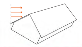Von aussen wirken Druck- und Sogkräfte auf Fassaden und Dächer in Abhängigkeit von Windrichtung und -Geschwindigkeit vw.