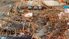 275 ±20 | 71 – 82 | T6 | Schadensatz: Sleicht = 30 %, Smassiv = 10 %. Leichtbauten werden in grösserem Umfang zerstört. Schwere Schäden an strukturellen Elementen von Massivbauten. Einsturz einzelner Gebäude. Schwere Kraftfahrzeuge werden hochgehoben. |